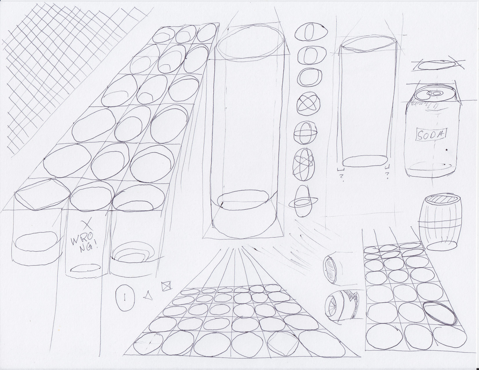 I also tried to draw a soda can, a jet engine, and a barrel, which have a bulging look to them. Who would have thought a cup was hiding such intricacy in plain sight?