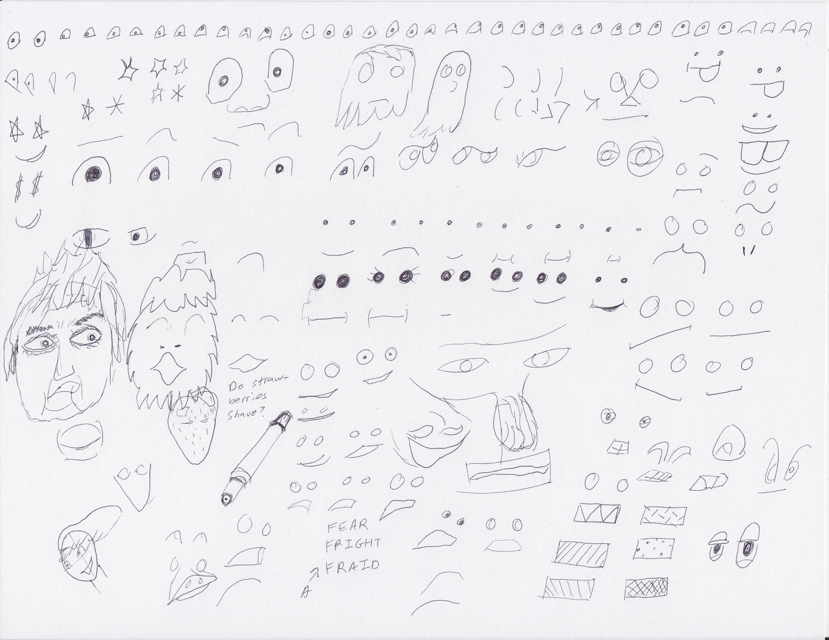 There is subtlety in a mouth that is hard to capture. A simple smiley face captures the minimum needed to express the emotion, but lacks conveying anything more deep. I tried today to draw the important parts of the face, but was let down by my work. All the eyes I drew were (on accident) very angry or surprised. I had trouble expressing gladness (as opposed to happiness), being bored, being let down, and excitement. The pupil size is the easiest to change, and the eyebrow (muscles, bones, and all) seem to be the hardest.